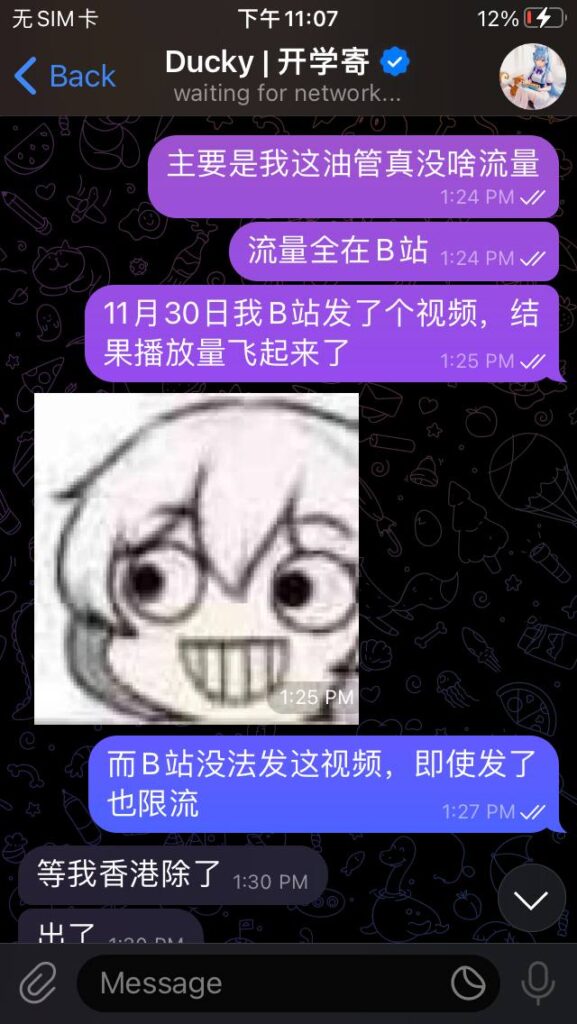 “既然同意让我做推广,知道我的名气不是很大,知道我的视频质量不高,知道我总被限流,知道我是个灾星(我推广软件小妹的百度网盘不限速脚本,结果脚本垮了;我推广hax和woiden,结果hax关站几个月,woiden前段时间才恢复;我推广linuxone,结果创建账号多了一道审核程序).就理应接受一切。不等于把我跟其它大YouTuber进行对比,看到我播放量低就来我这闹。”