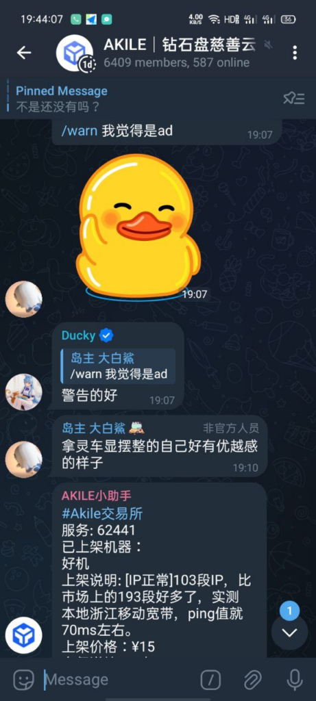 首先,我看到一群人在ak群里“推广”vps:“隔壁搞促销了,快来啊!”我也仿照他们写:我知道一个隔壁,4H4G的美国纯i6只要28元三个月”。别人的“推广”都没注明是哪家vps,因此我也多加了一句:“对面老板特别声明,说不能让岛主知道”。(那家老板本来就和岛主有点矛盾)